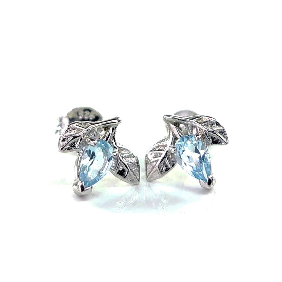 Topaz Earrings 0.5ct Blue Leaf Studs Silver December Birthstone