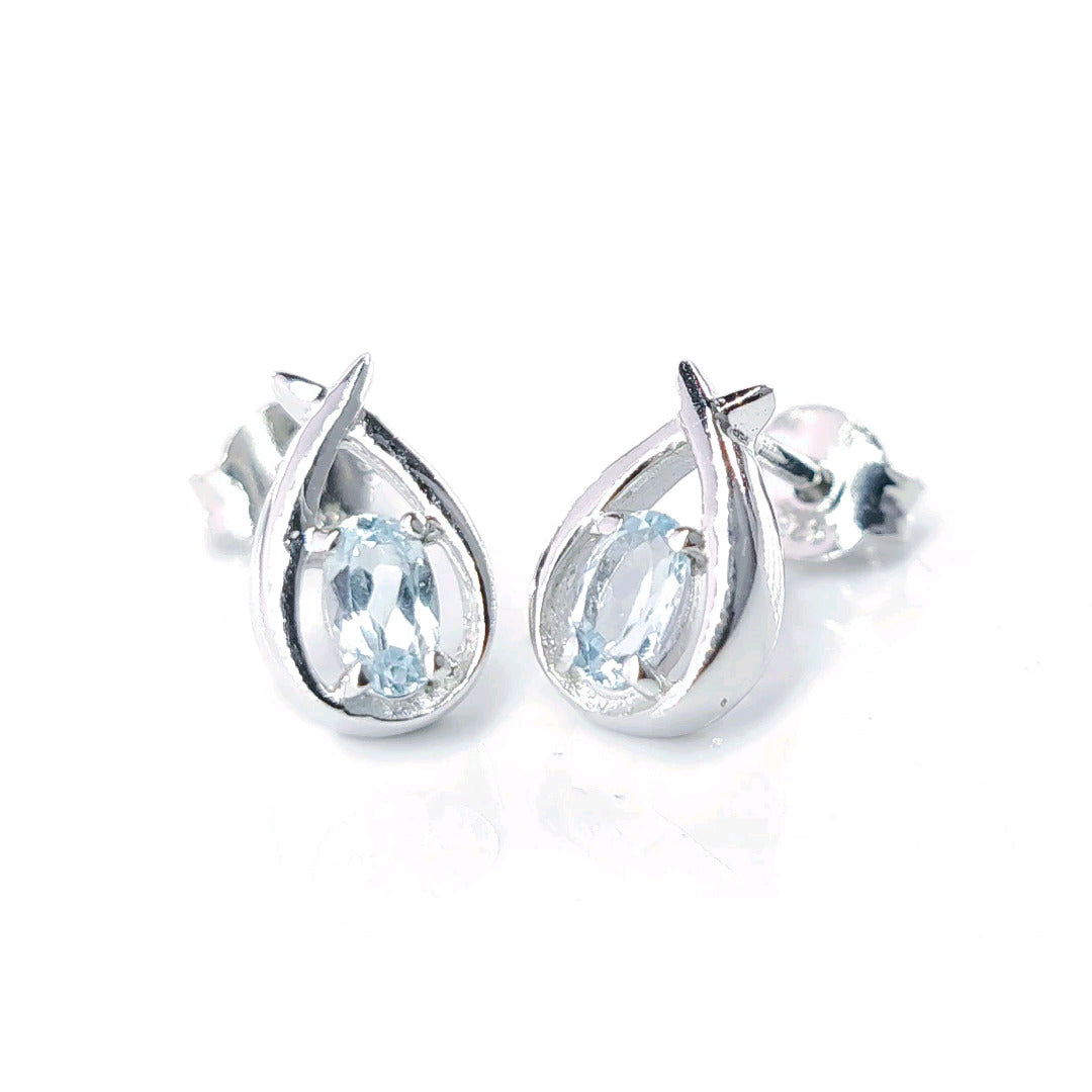 Elegant oval topaz studs set in a twisted silver mount. The natural blue topaz is from Africa and each earring is set with a stone measuring 3 x 5mm making the pair approximately 0.5ct.