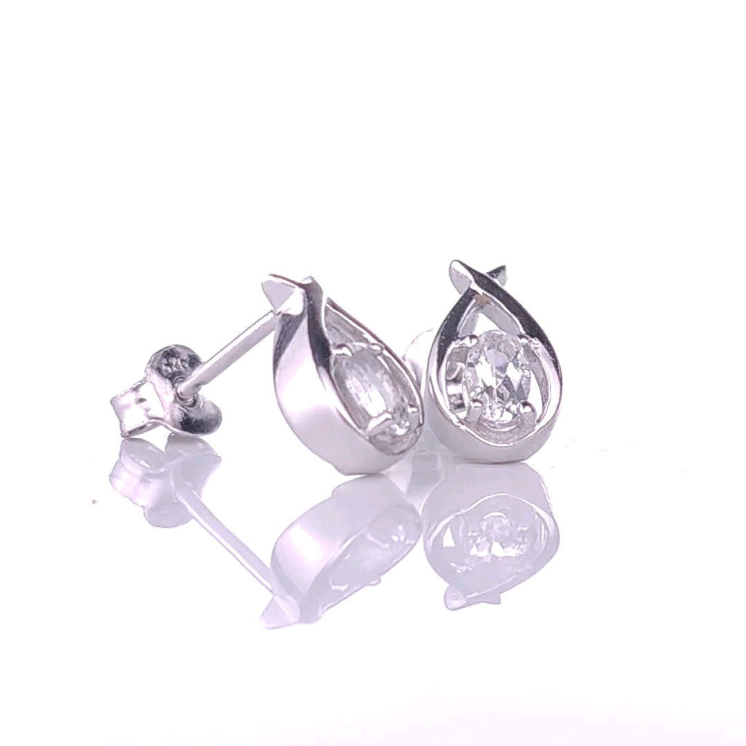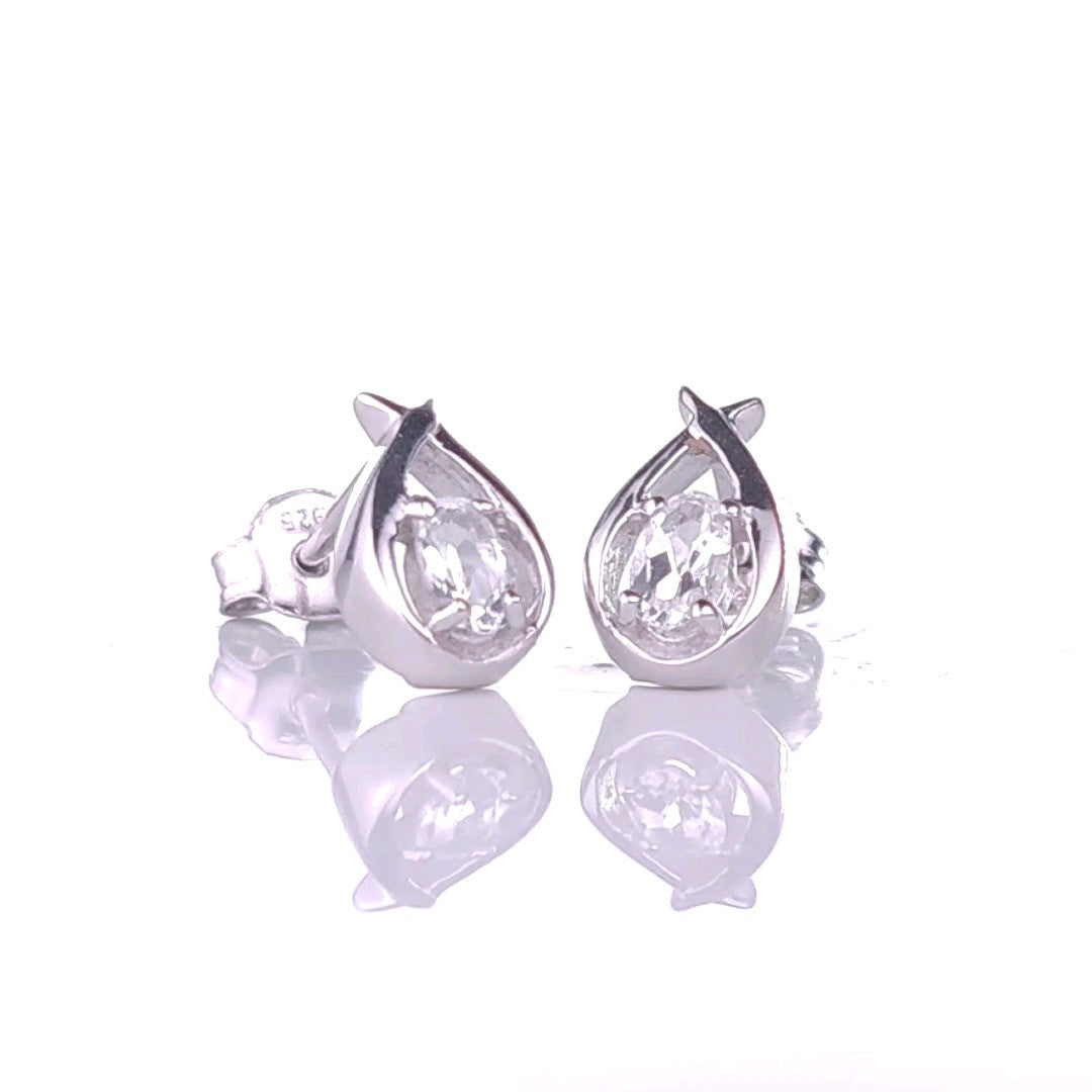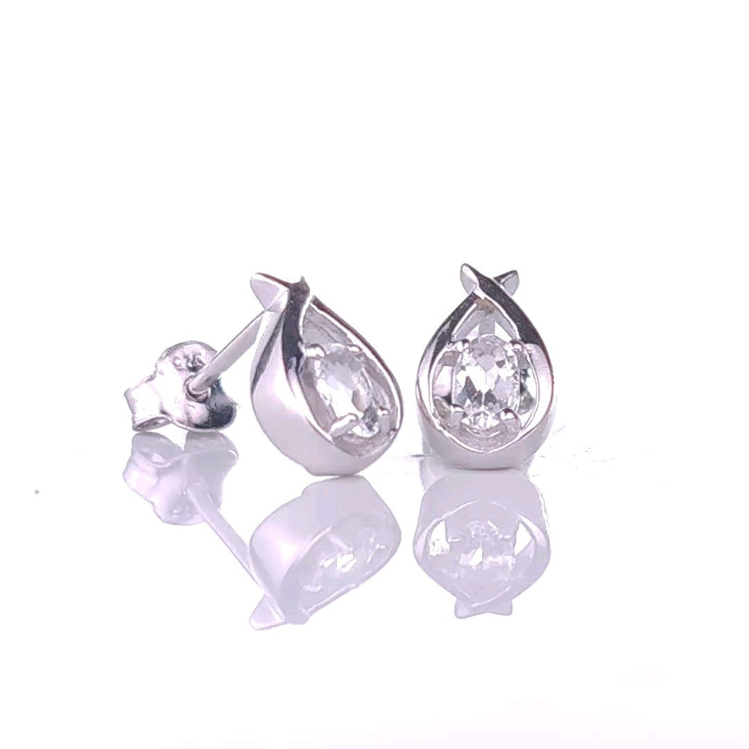 Elegant oval topaz studs set in a twisted silver mount. The natural white topaz is from Africa and each earring is set with a stone measuring 3 x 5mm making the pair approximately 0.5ct.