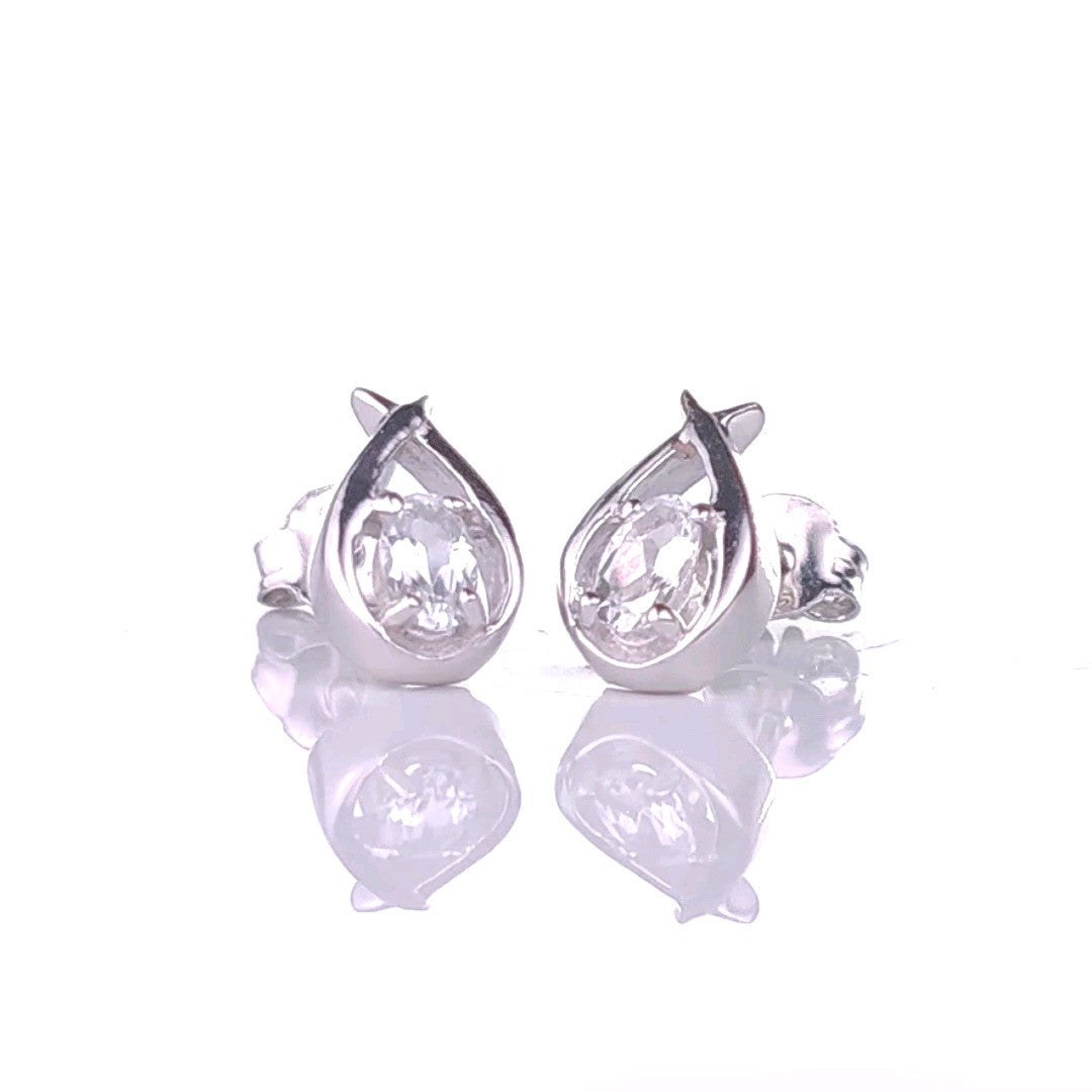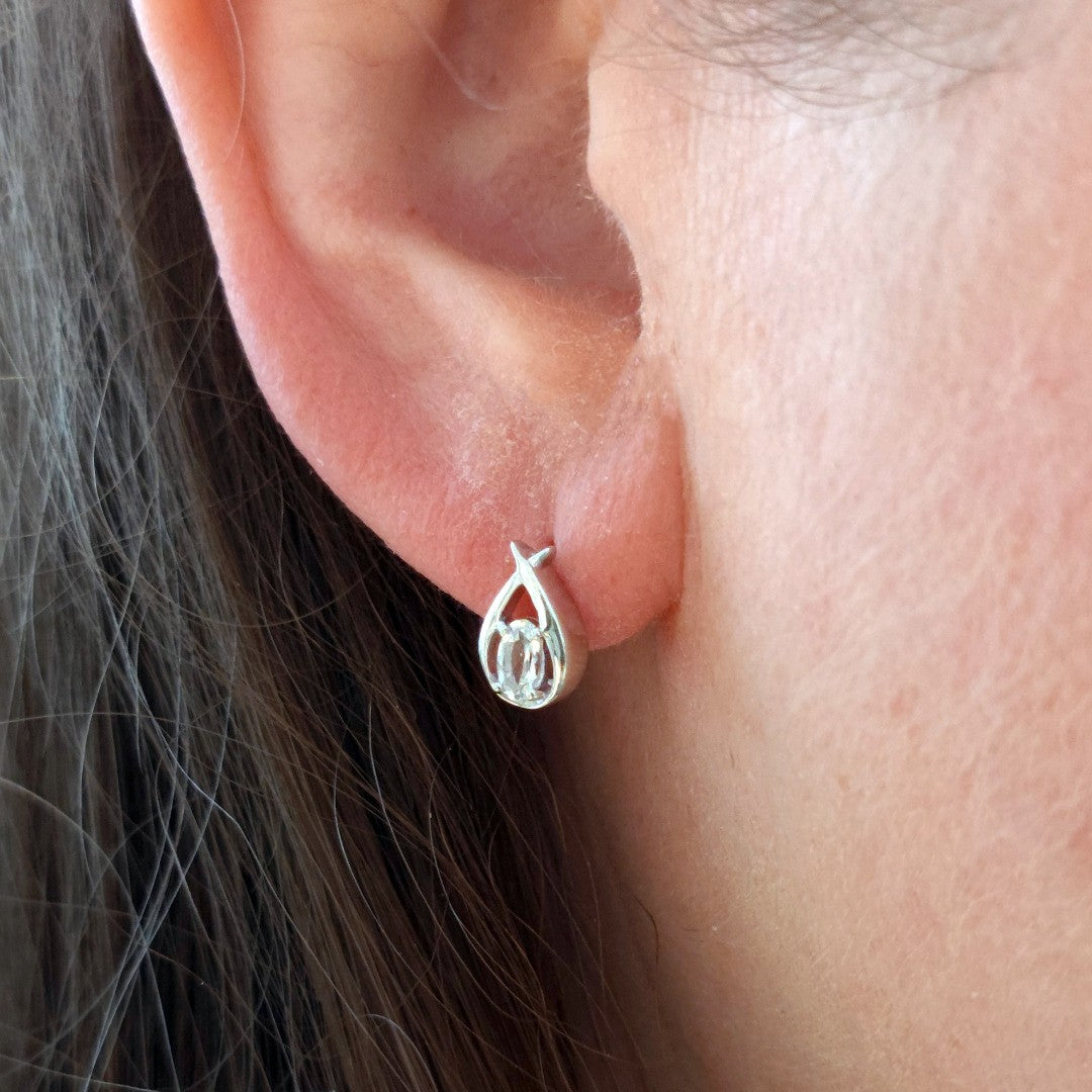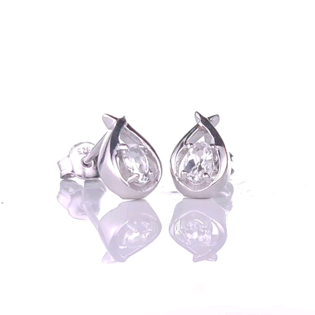 Elegant oval topaz studs set in a twisted silver mount. The natural white topaz is from Africa and each earring is set with a stone measuring 3 x 5mm making the pair approximately 0.5ct.