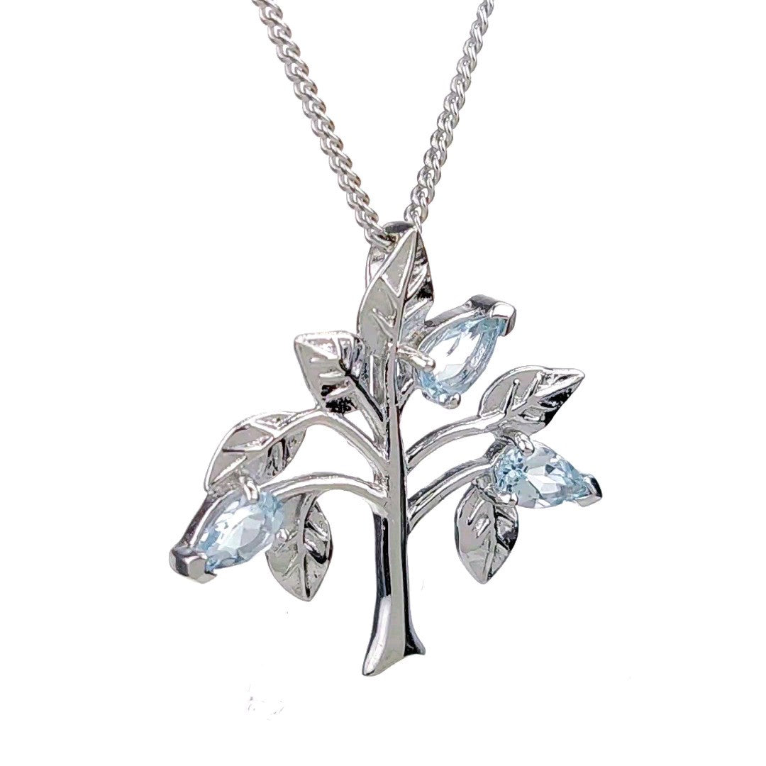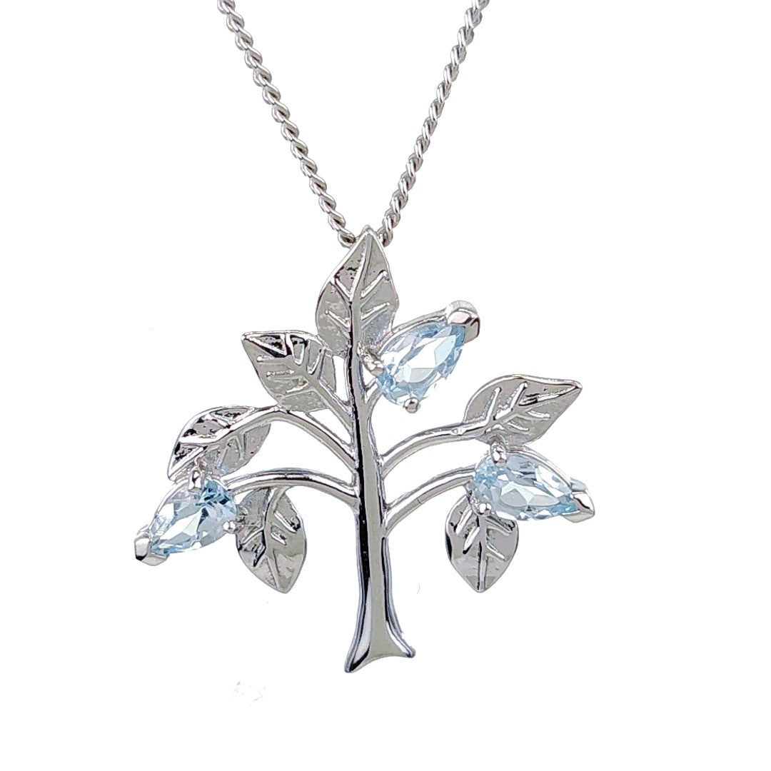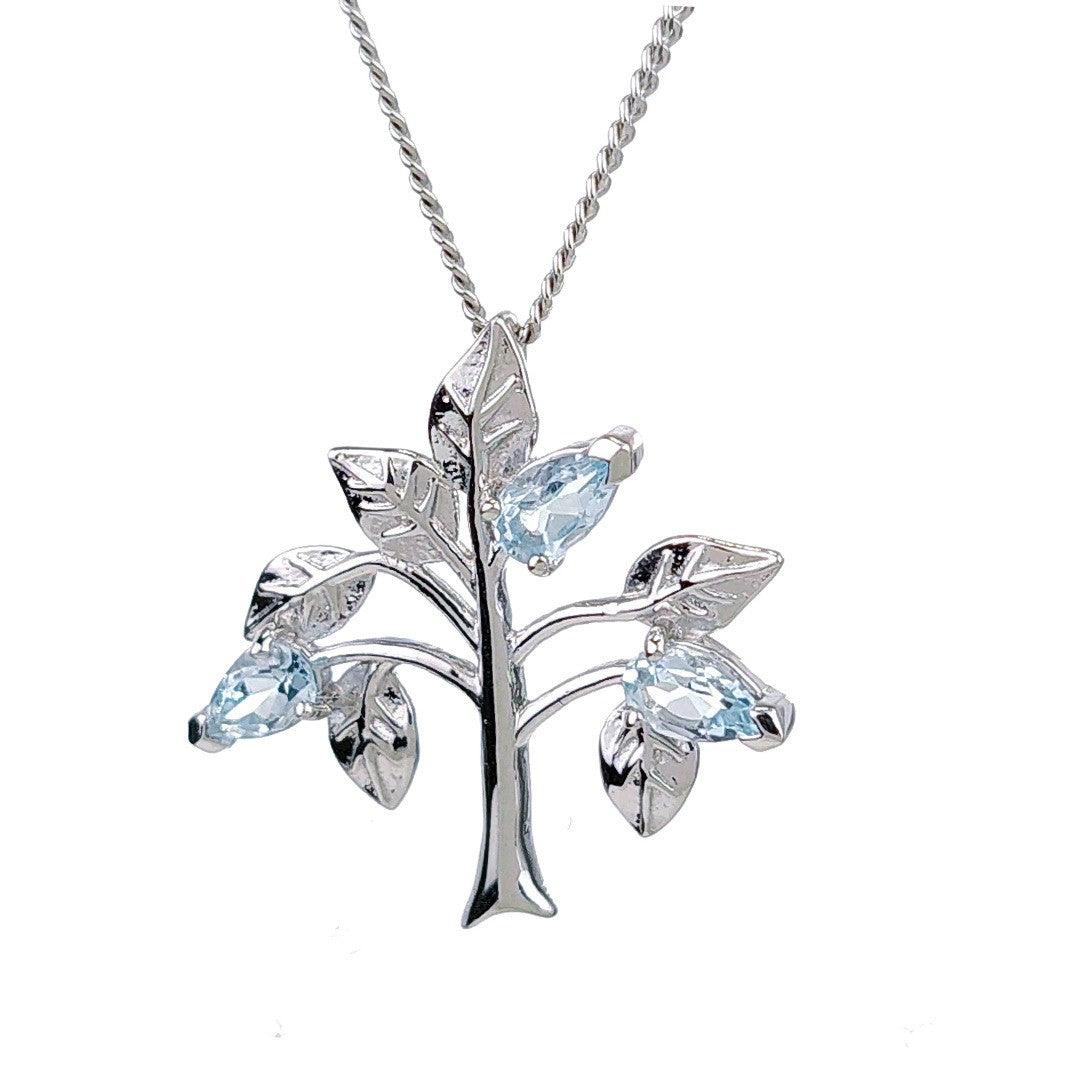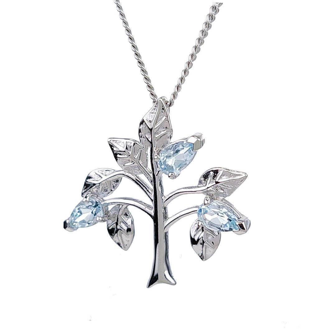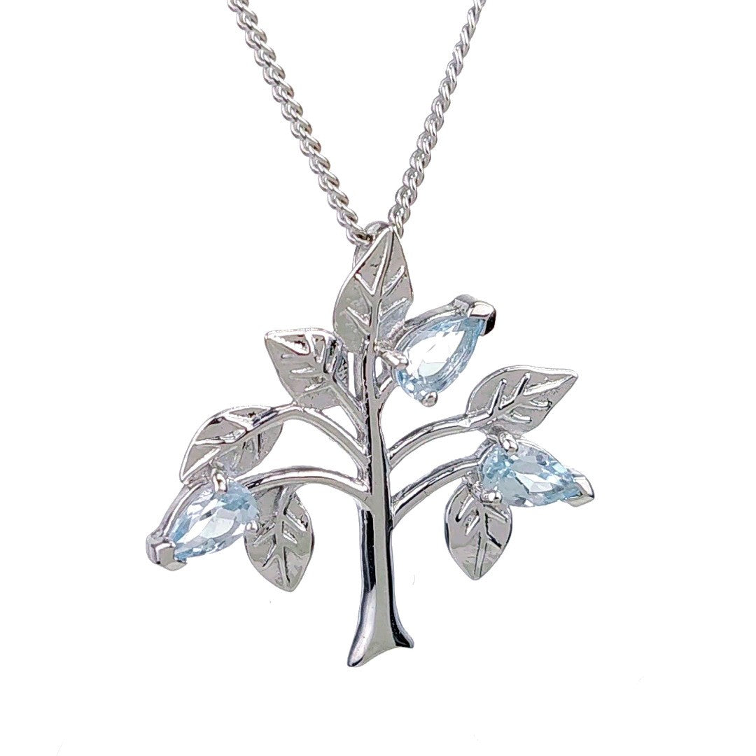 Topaz Necklace 0.75ct Blue Tree of Life Pendant Silver December Birthstone
