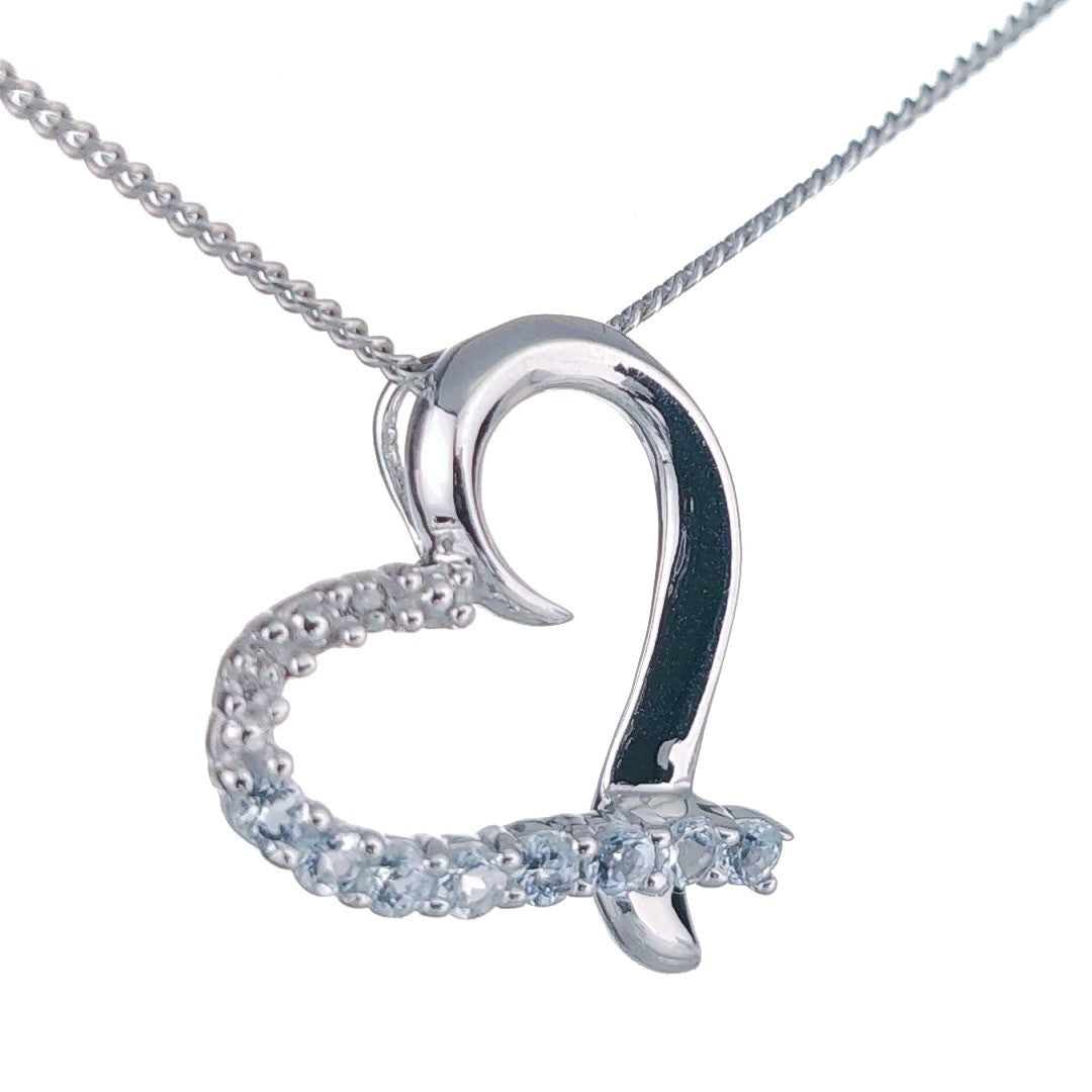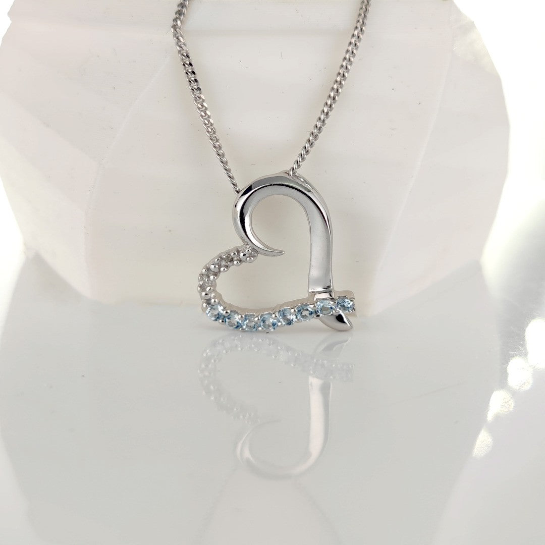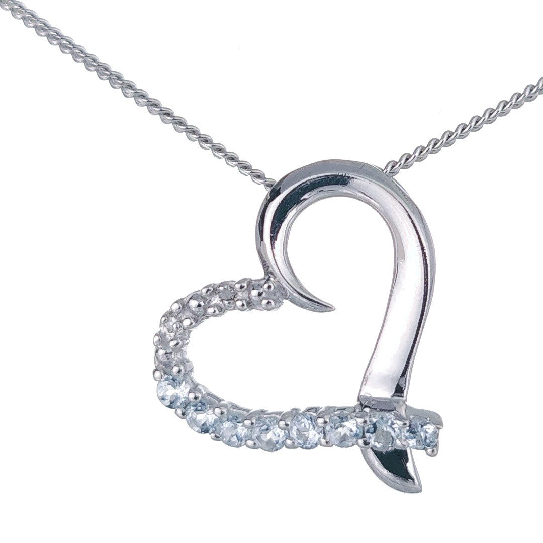 Topaz Necklace Diamond 0.32ct Heart Blue Pendant Sterling Silver December Birthstone