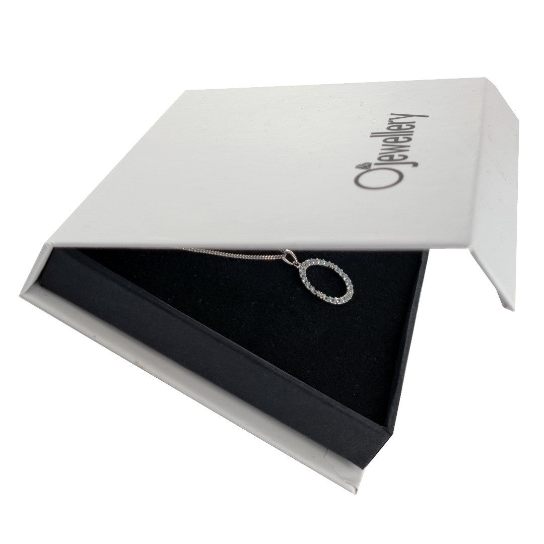 Supplied in an Ojewellery presentation box, within a ribbon handled gift bag, complete with product information authenticity card with space for a gift message and a jewellery cleaning cloth to keep your jewellery in ready to wear condition.