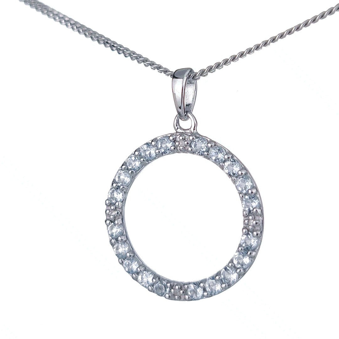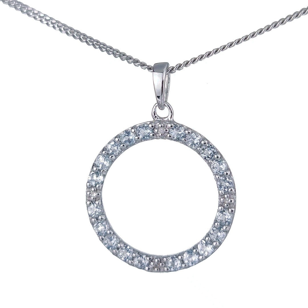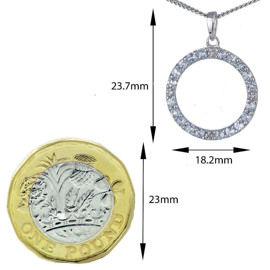 Topaz Necklace Diamond 0.8ct Blue Circle Pendant Sterling Silver December Birthstone
