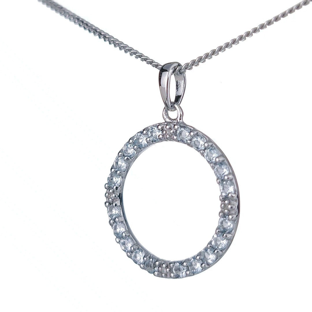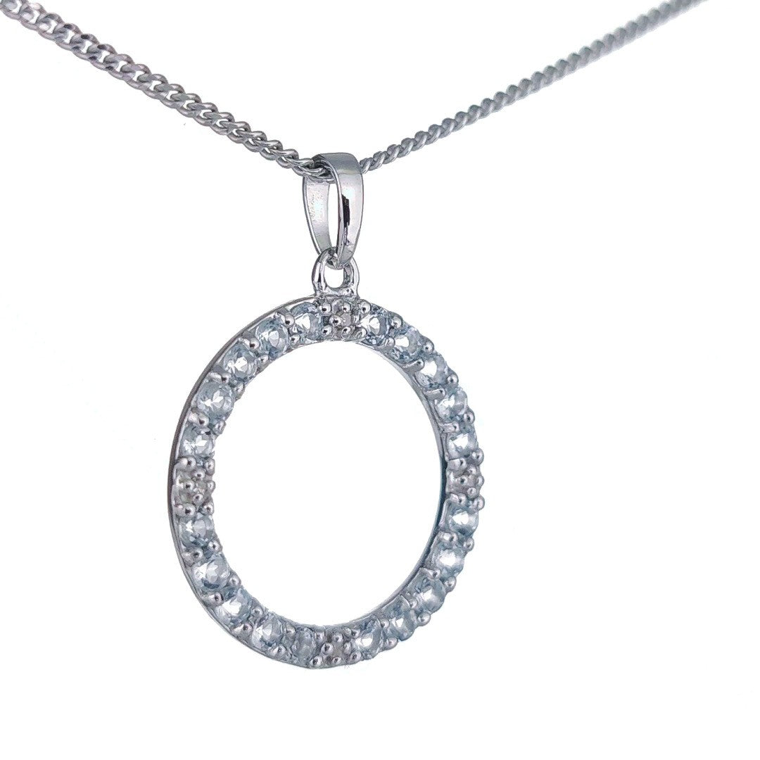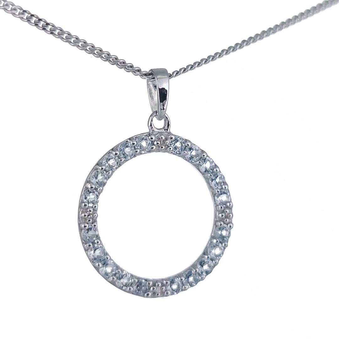 Topaz Necklace Diamond 0.8ct Blue Circle Pendant Sterling Silver December Birthstone