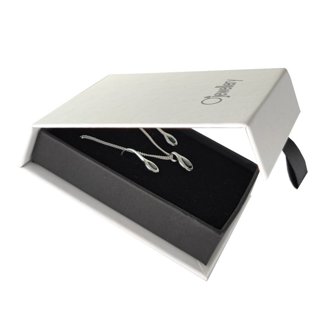 Supplied in an Ojewellery presentation box, within a ribbon handled gift bag, complete with product information authenticity card with space for a gift message and a jewellery cleaning cloth to keep your jewellery in ready to wear condition.