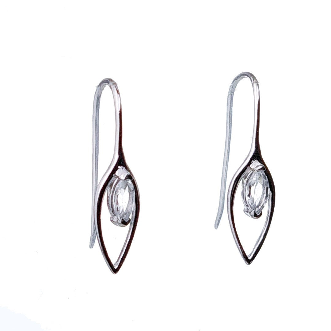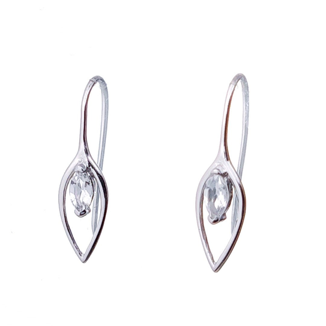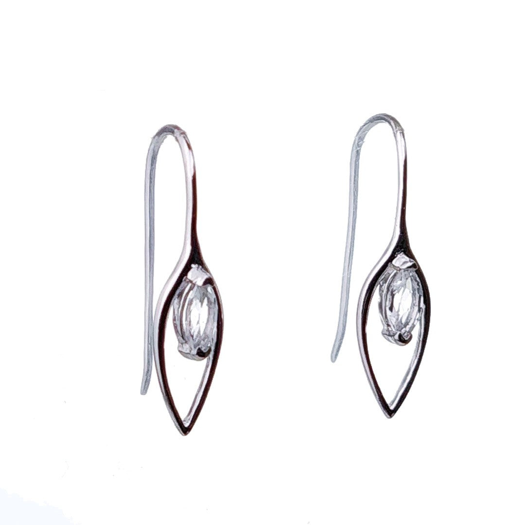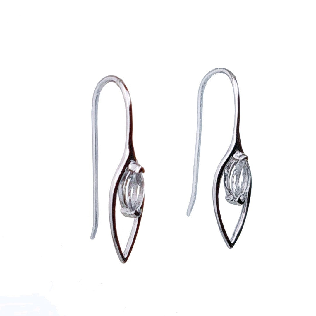 White Topaz Dangle Earrings 0.4ct Sterling Silver Marquise Hook Gift Box