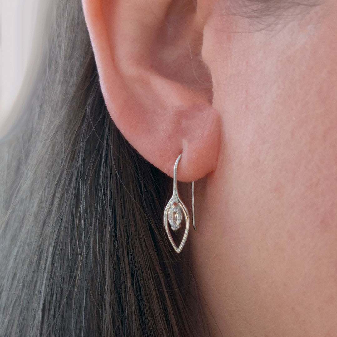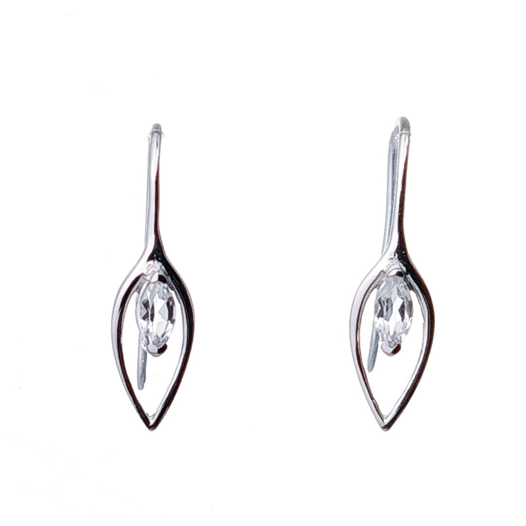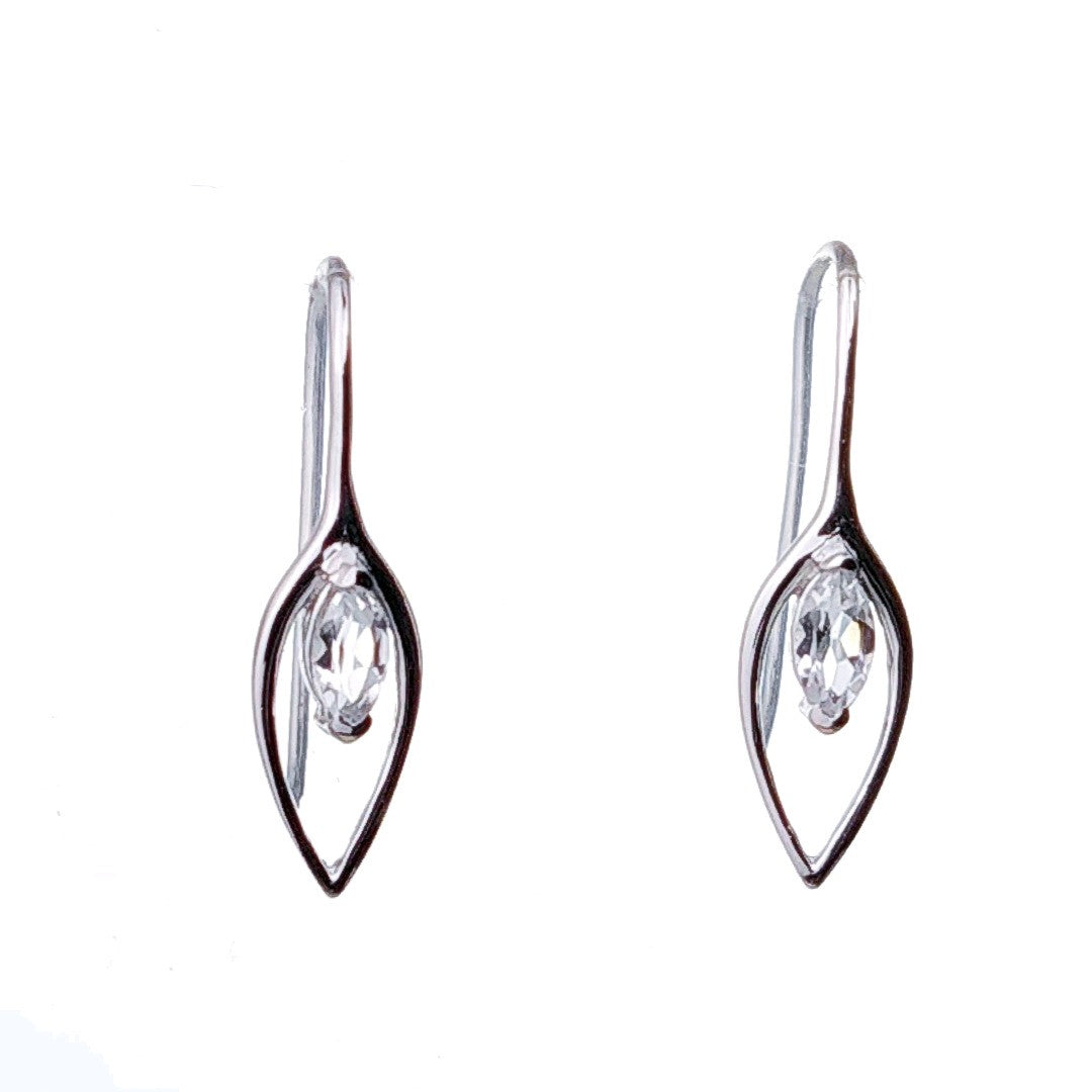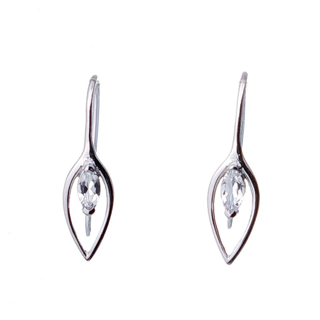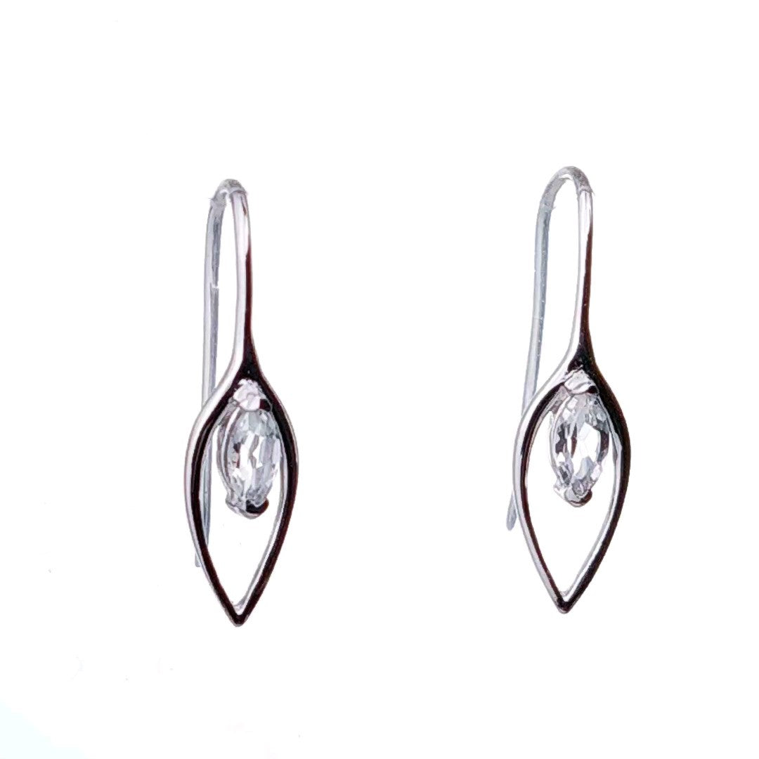 White Topaz Dangle Earrings 0.4ct Sterling Silver Marquise Hook Gift Box