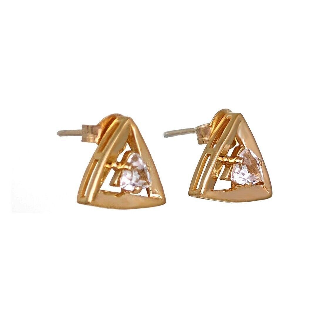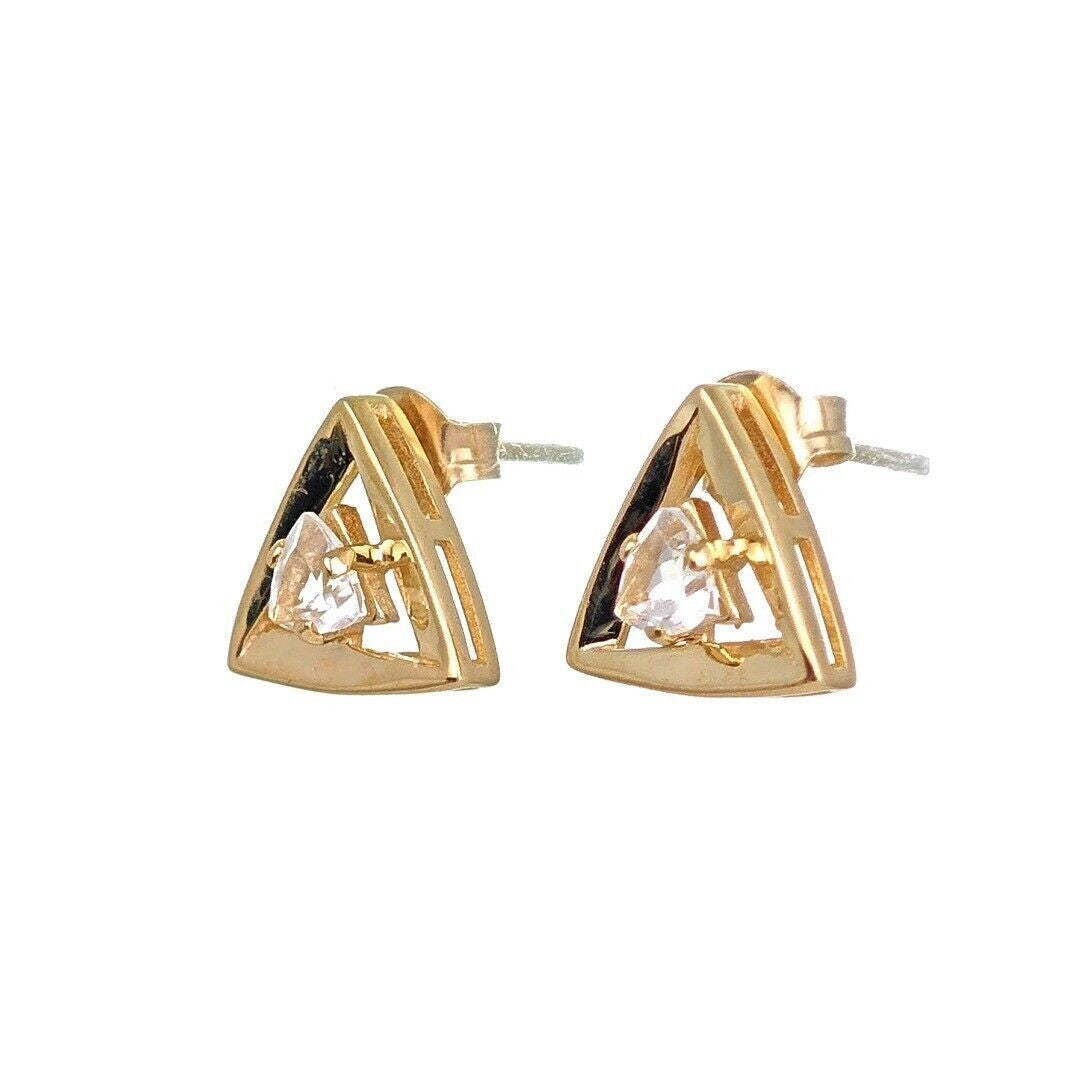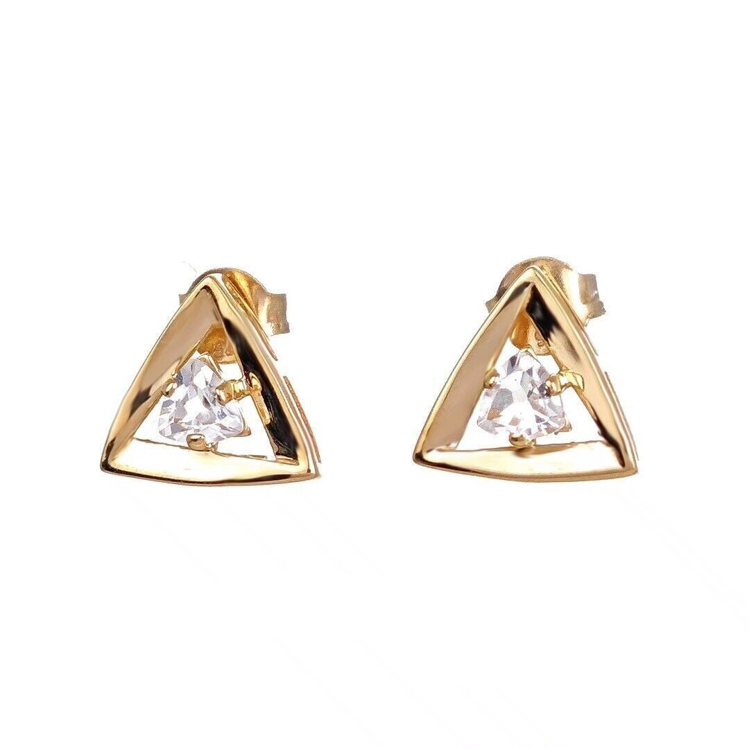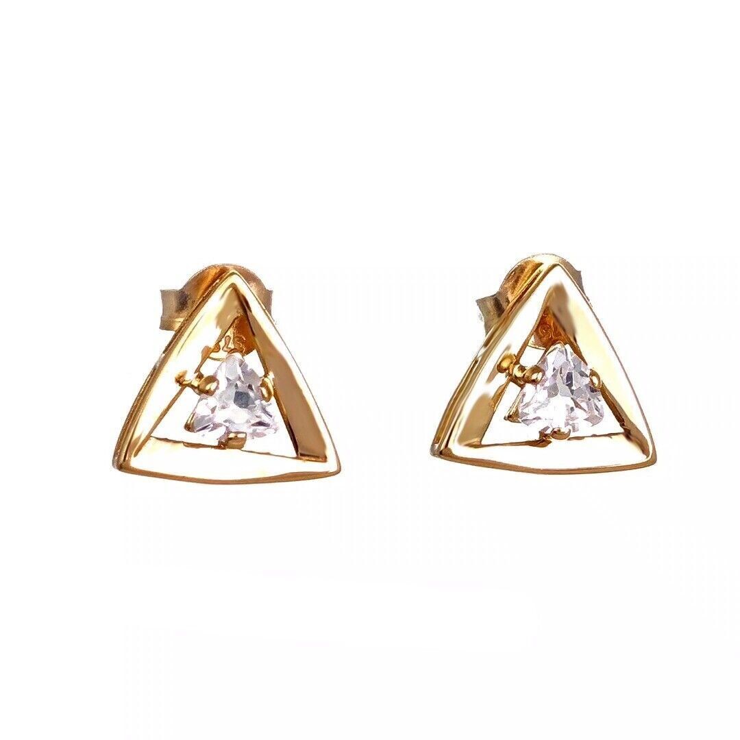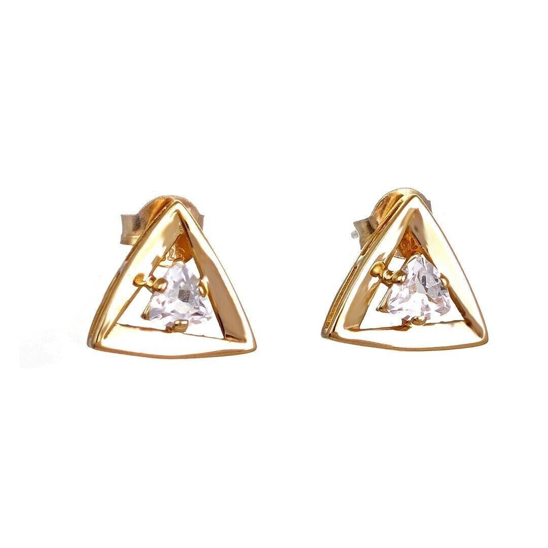9ct Gold White Topaz Earrings Trillion Studs