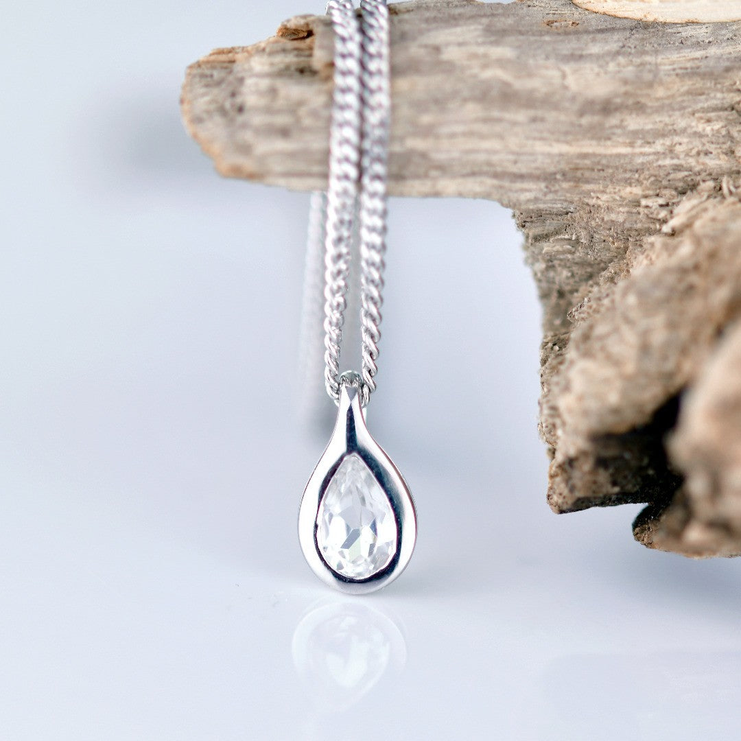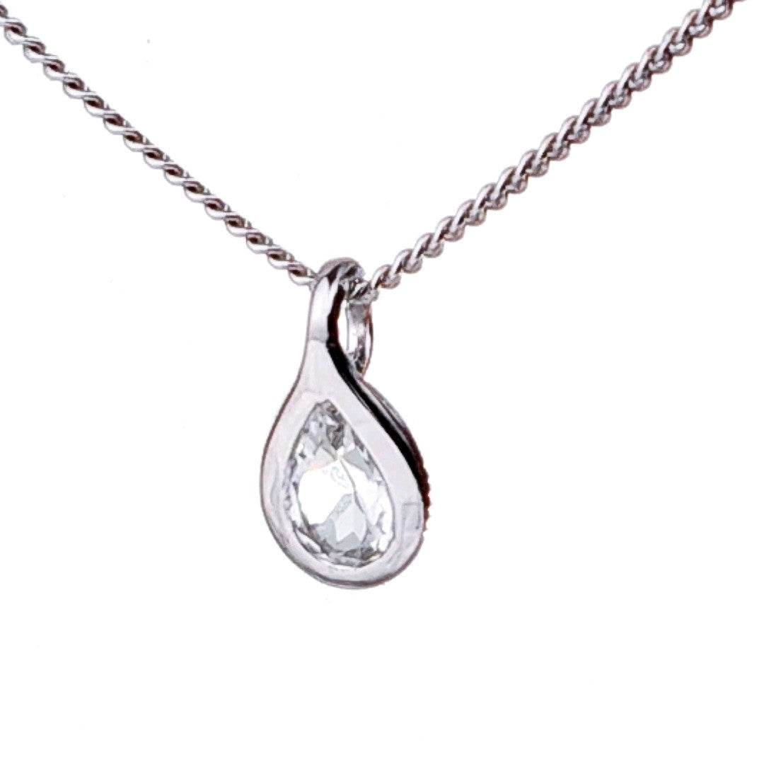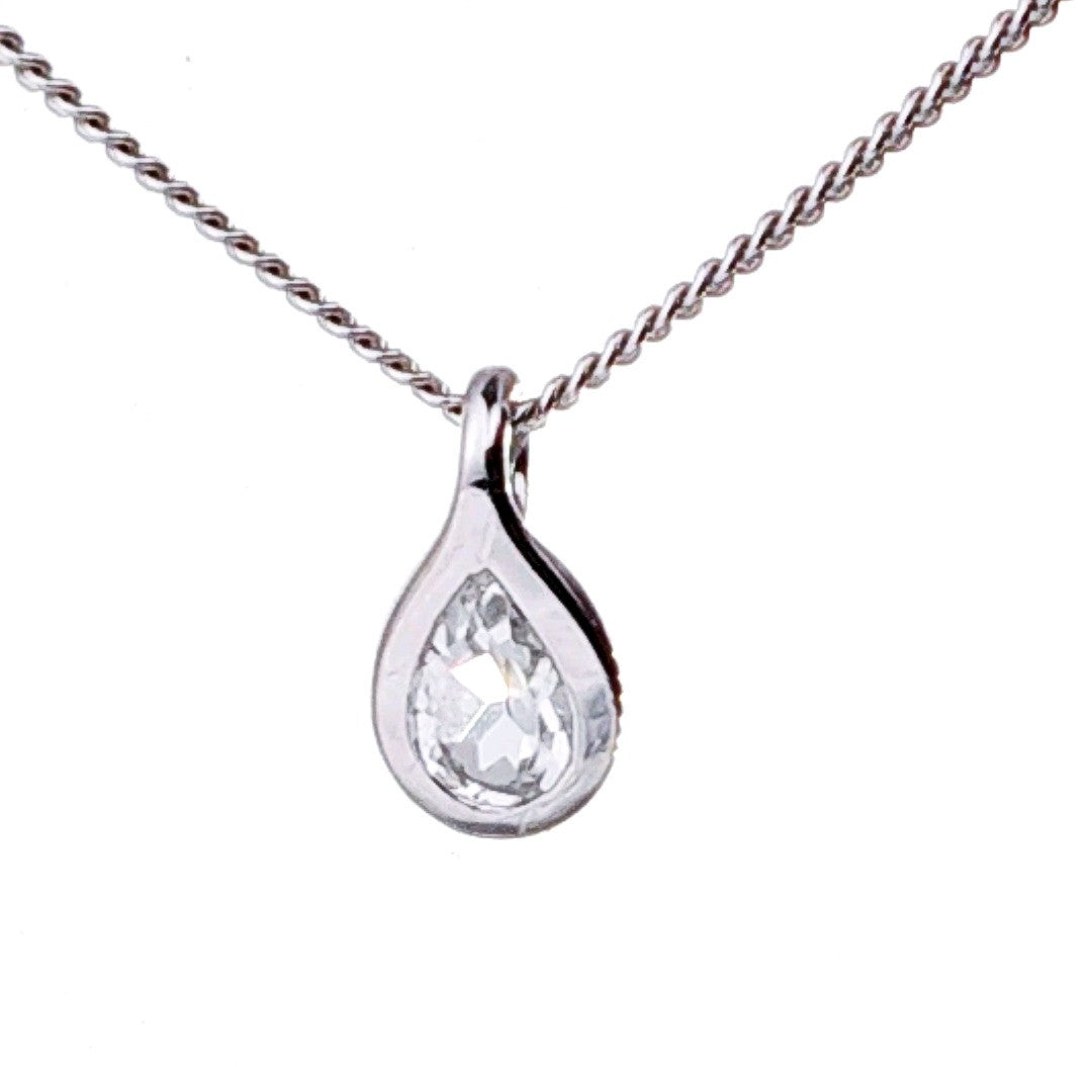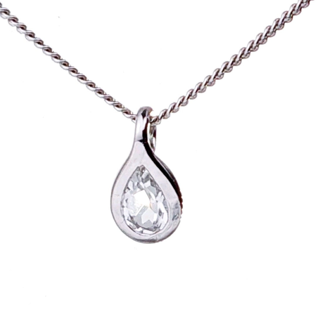 White Topaz Necklace 0.5ct Pear Pendant Sterling Silver
