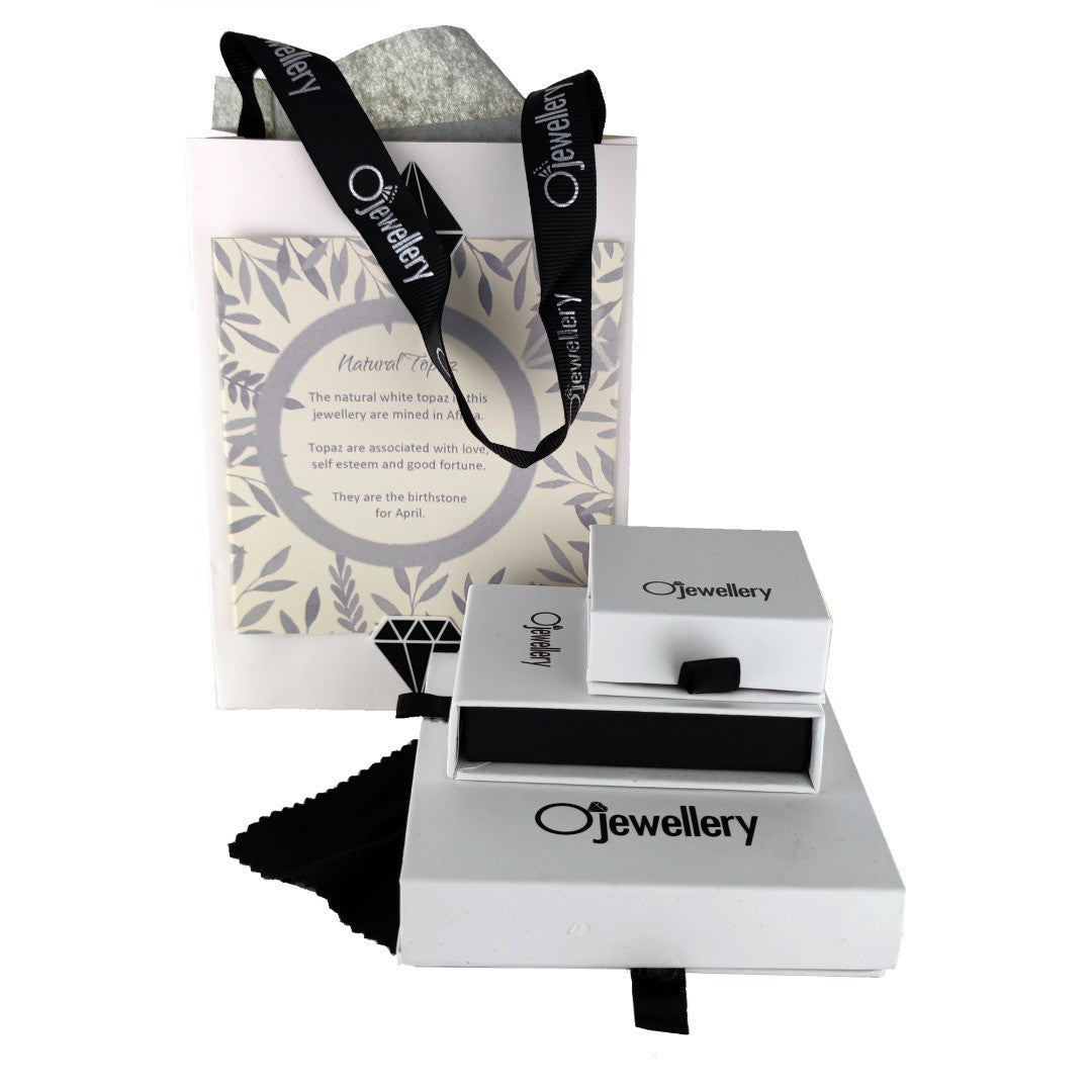 Supplied in an Ojewellery presentation box, within a ribbon handled gift bag, complete with product information authenticity card with space for a gift message and a jewellery cleaning cloth to keep your jewellery in ready to wear condition.