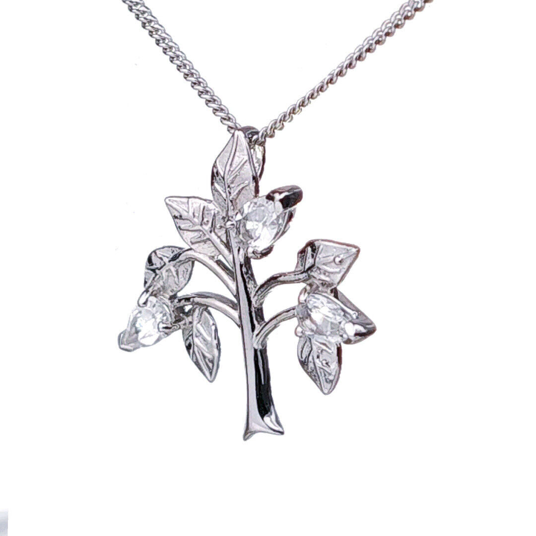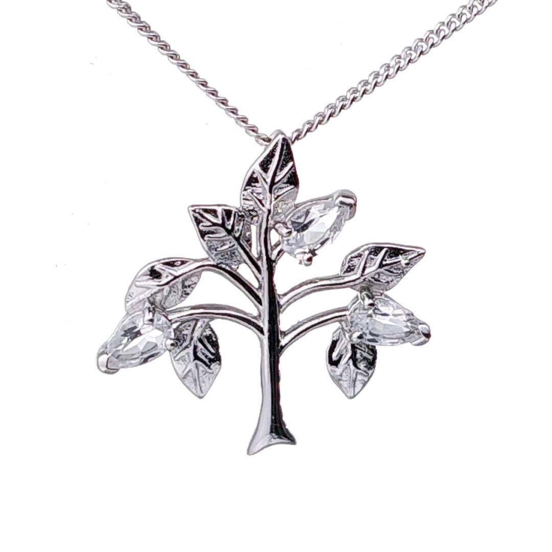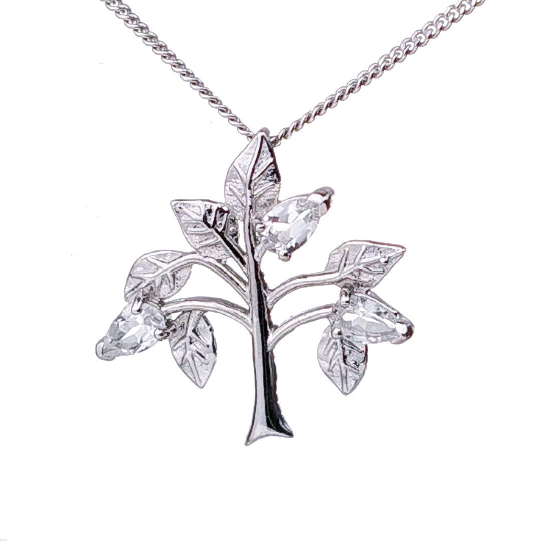 White Topaz Necklace 0.75ct Pear Tree of Life Pendant Sterling Silver