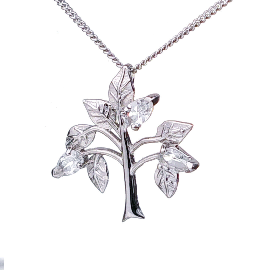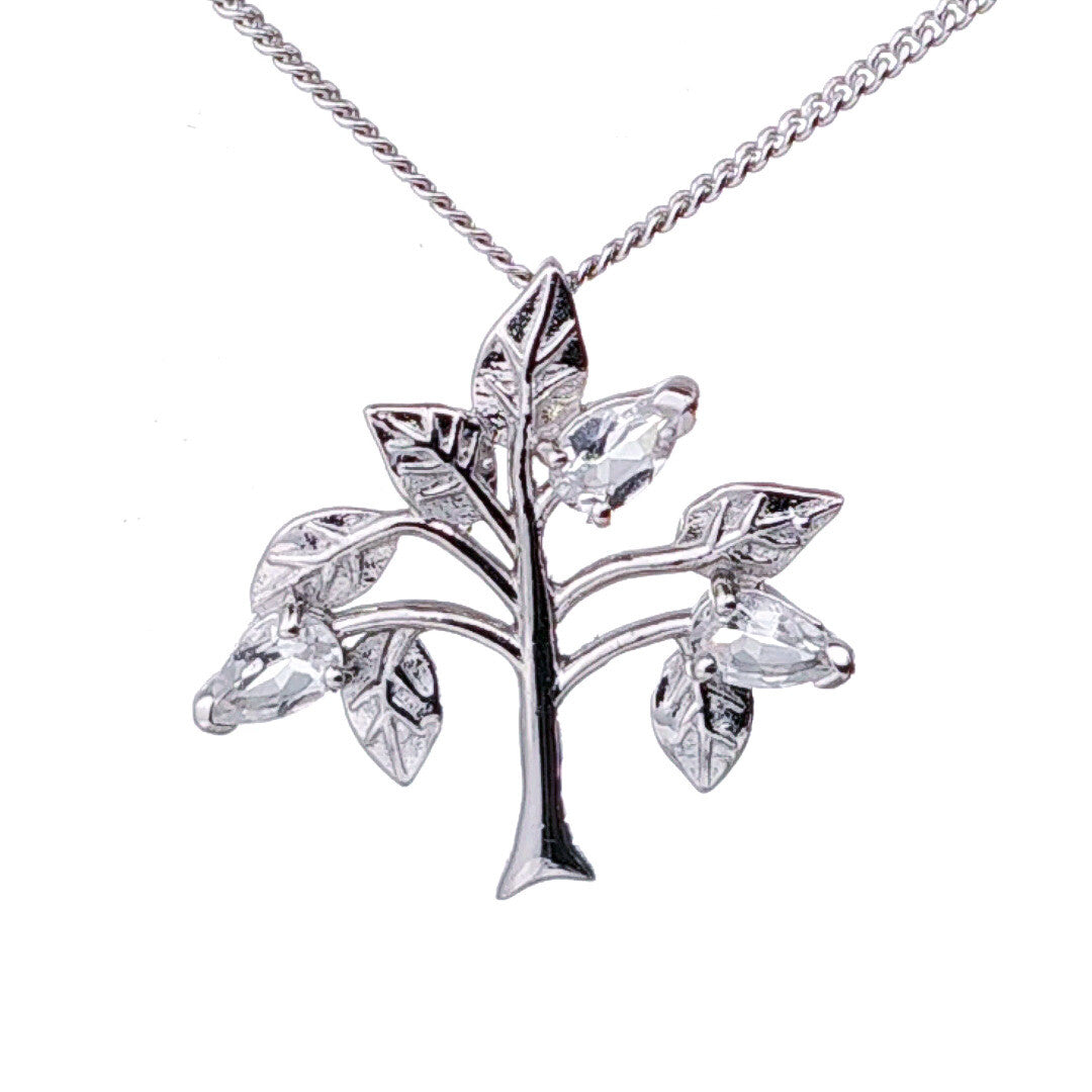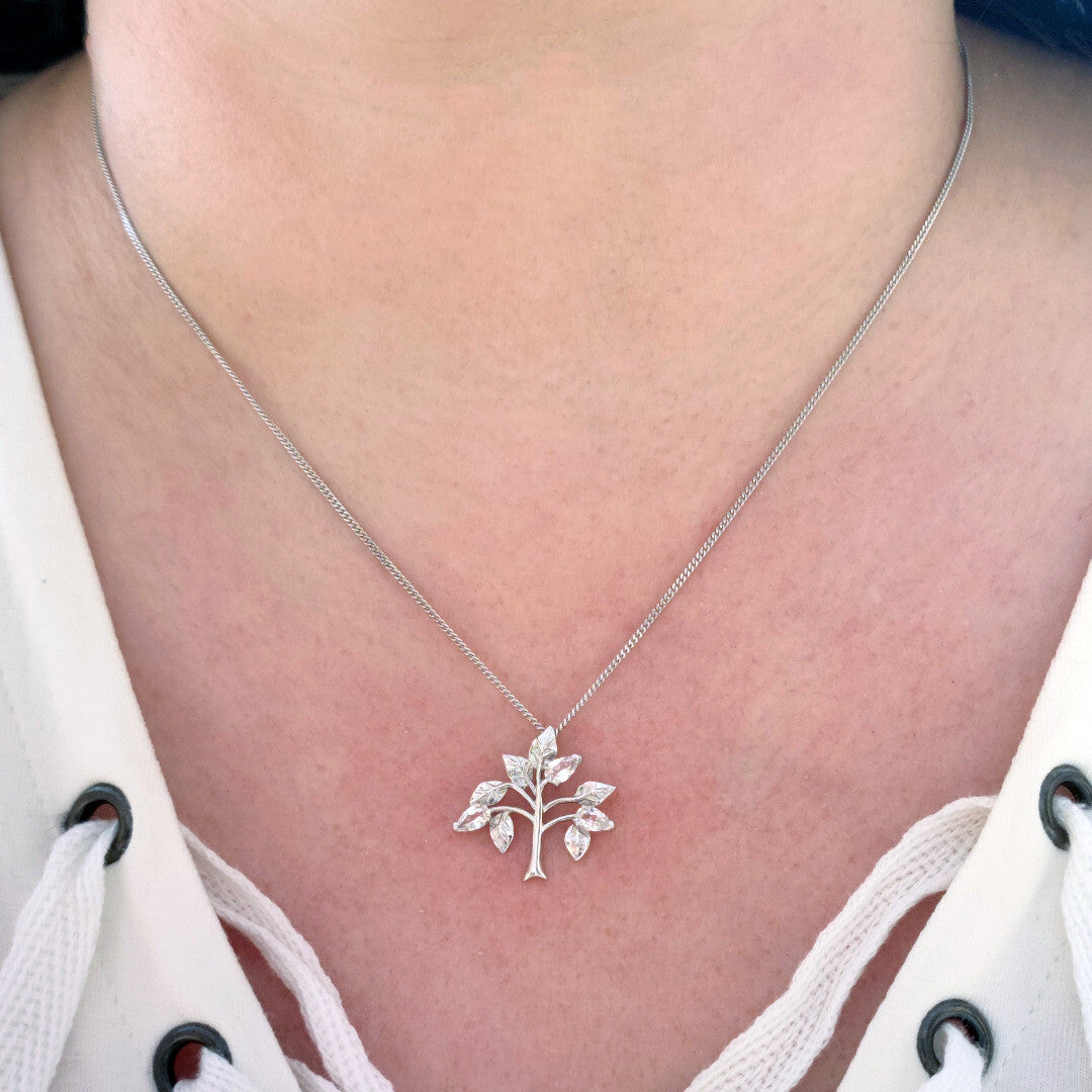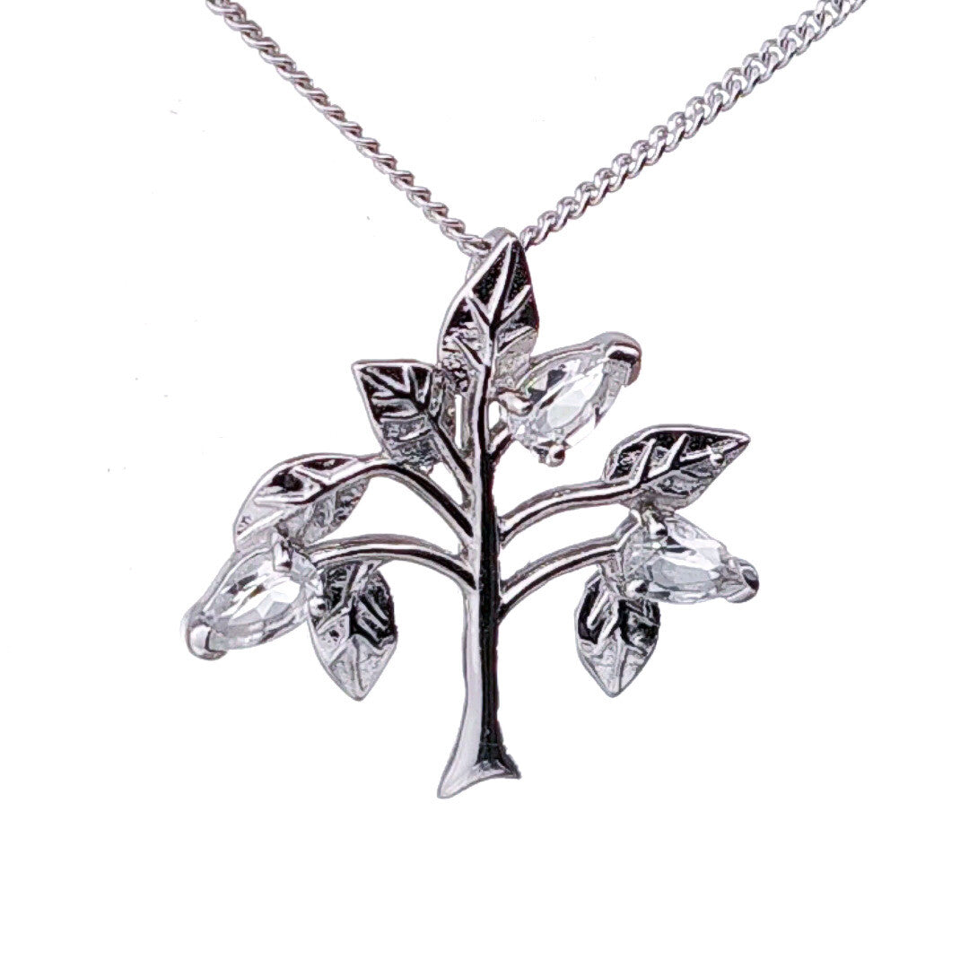 White Topaz Necklace 0.75ct Pear Tree of Life Pendant Sterling Silver