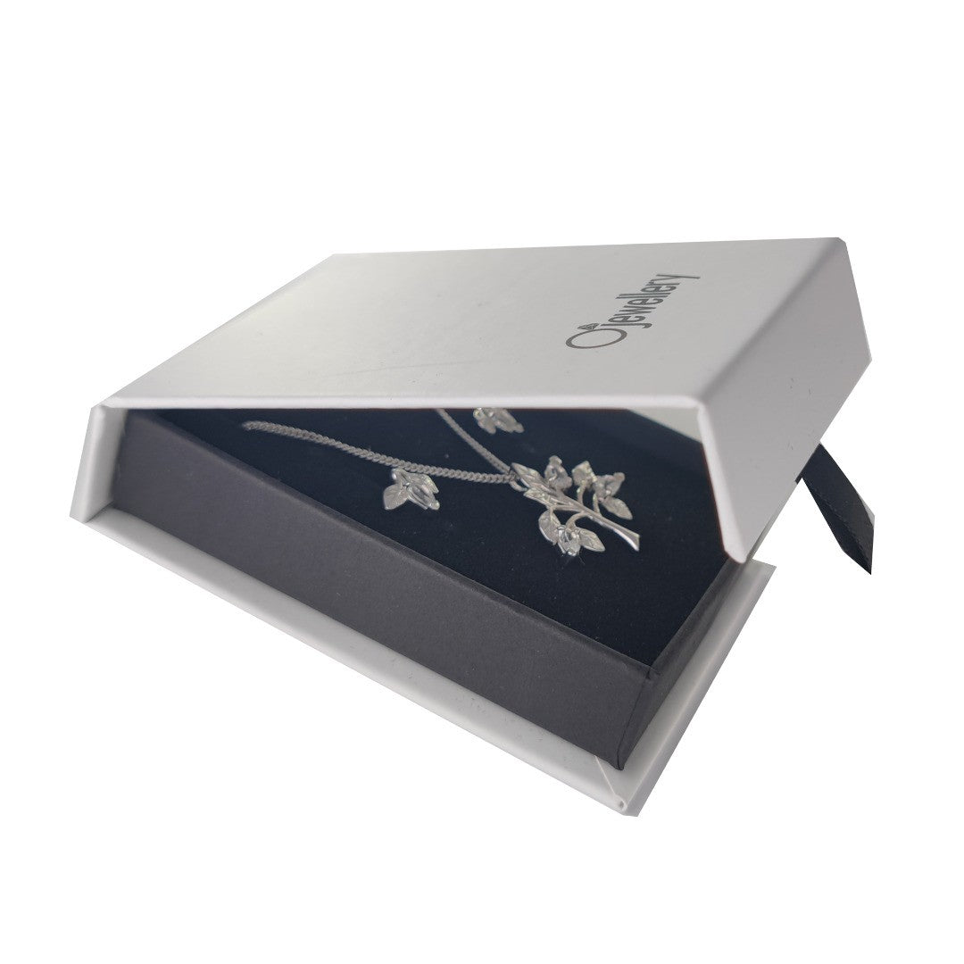 Supplied in an Ojewellery presentation box, within a ribbon handled gift bag, complete with product information authenticity card with space for a gift message and a jewellery cleaning cloth to keep your jewellery in ready to wear condition.