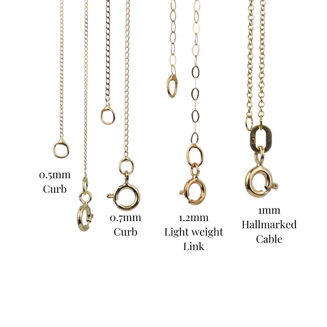 Chain: Curb link 9ct yellow gold 18inch spring ring fastening