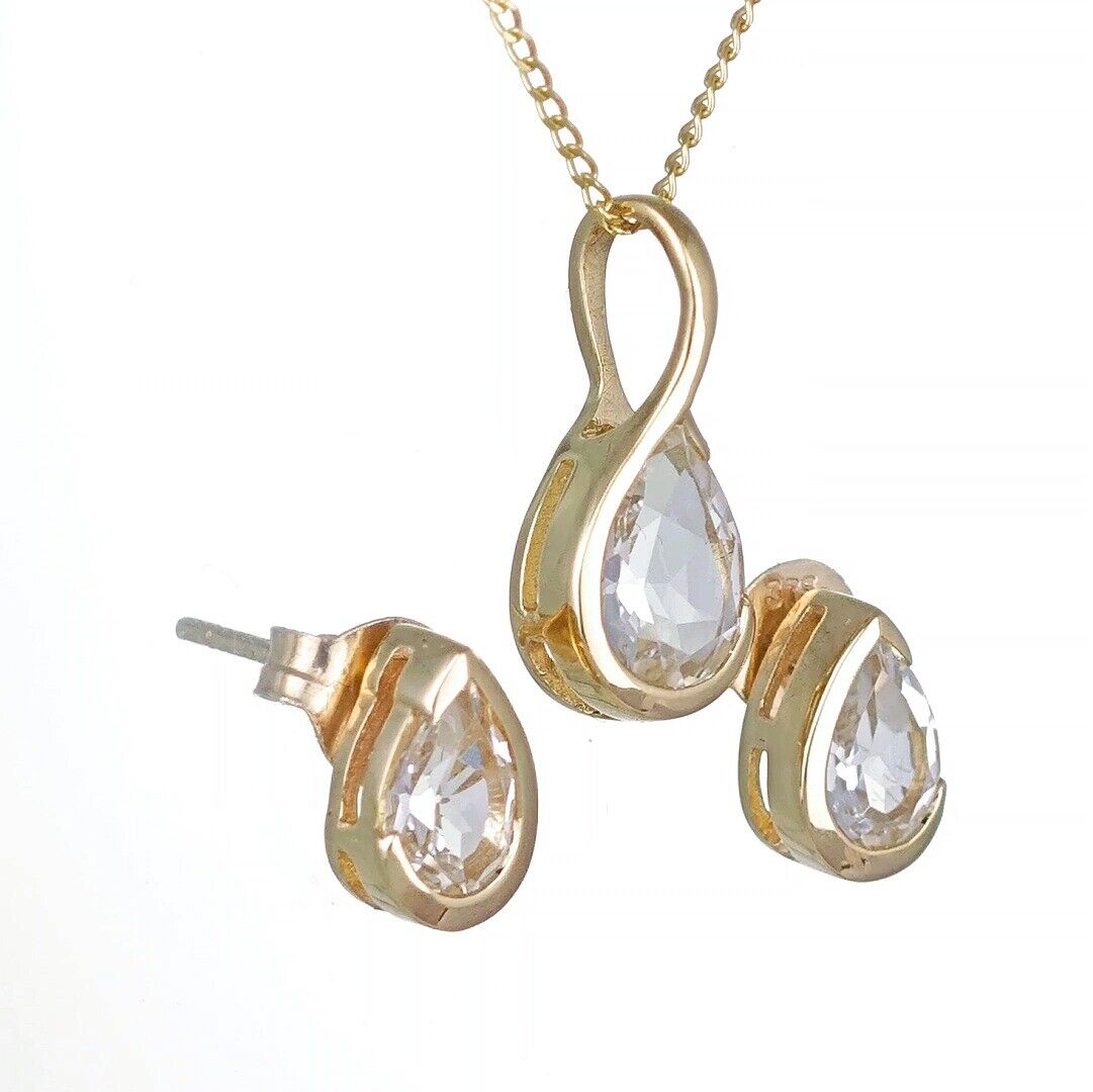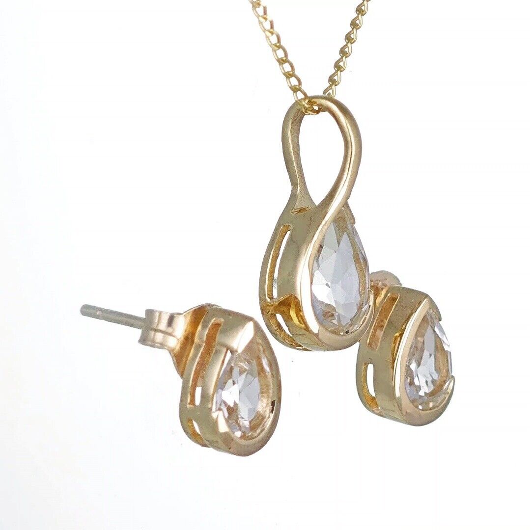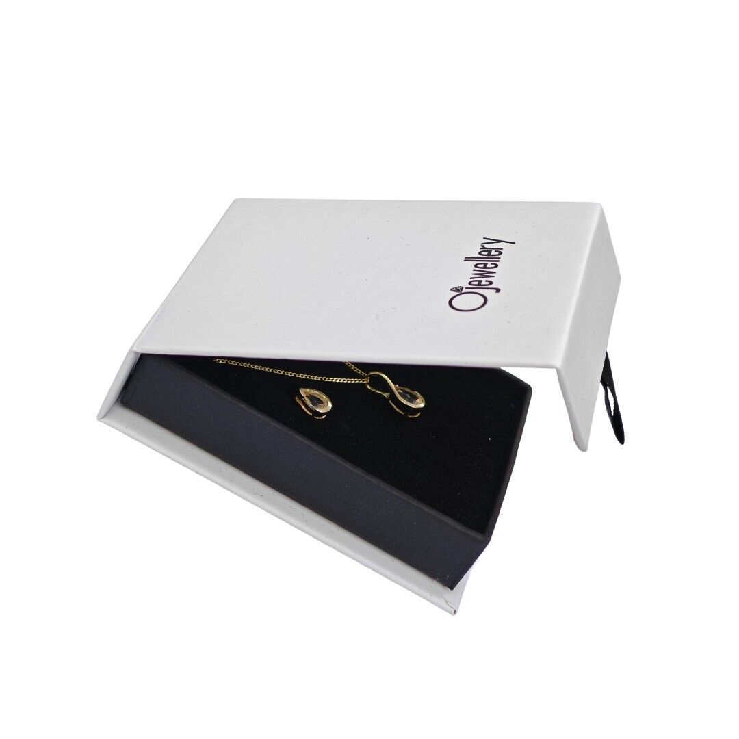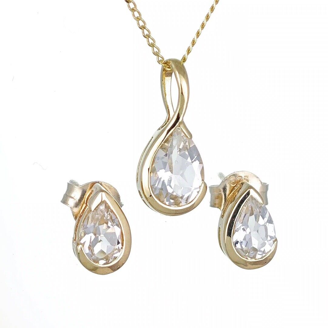 White Topaz Set Pendant and Earrings 9ct Yellow Gold Infinity Loop